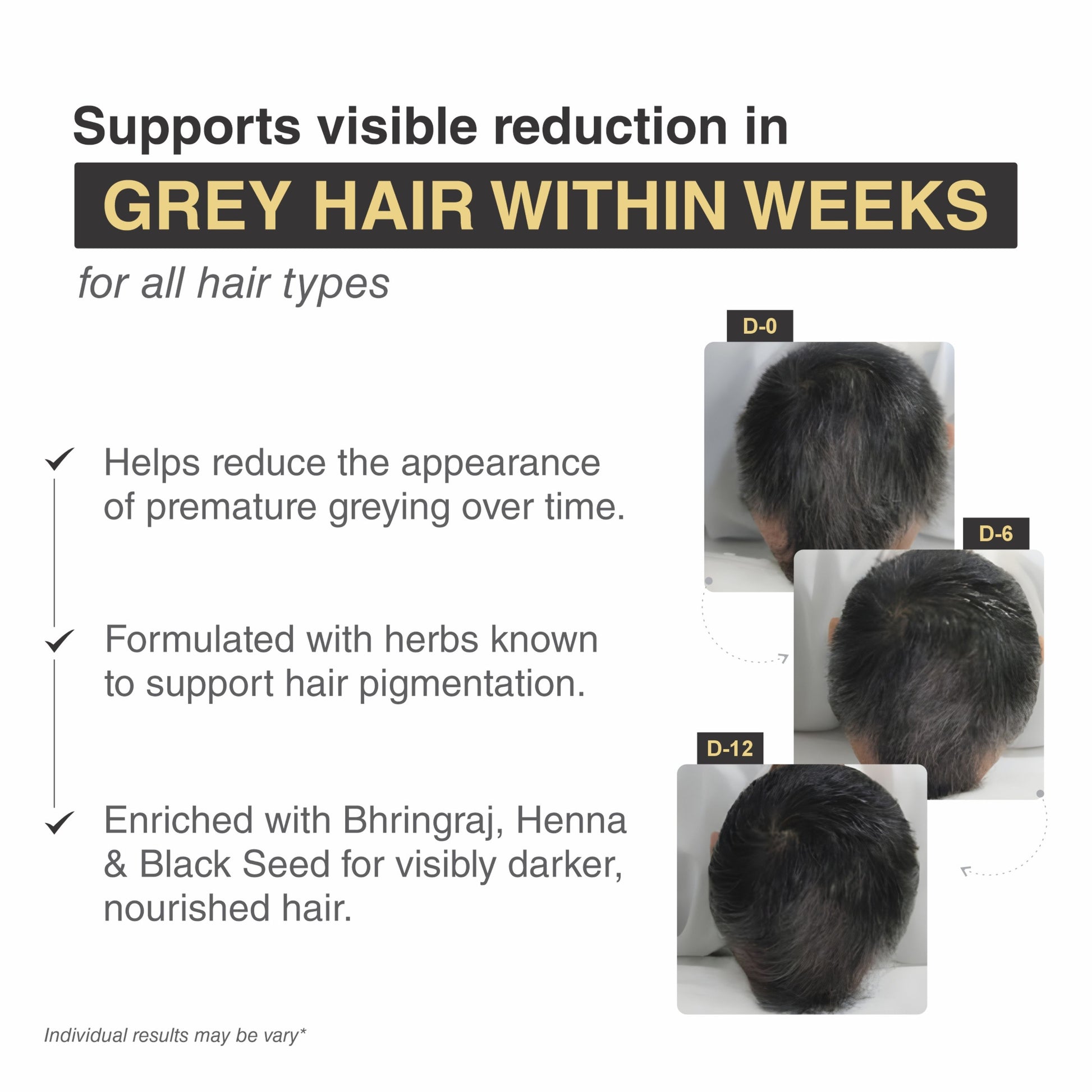 Formulated with all-natural ingredients, this hair serum supports natural hair color & helps manage early signs of greying.